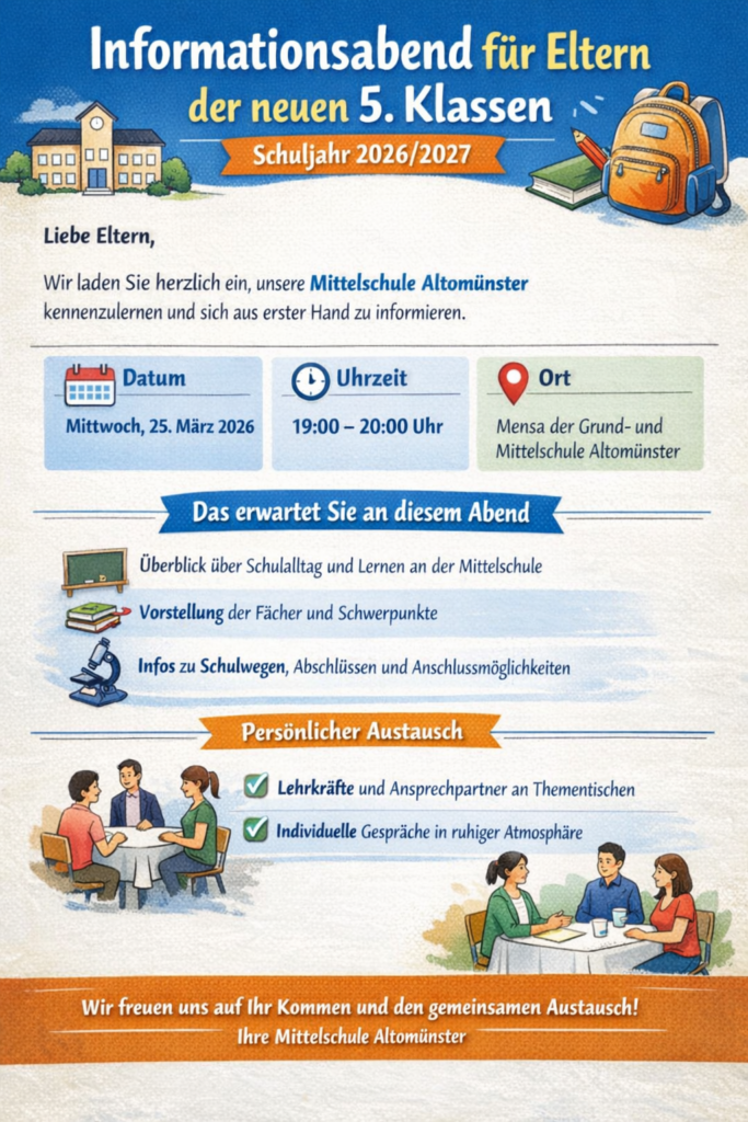 Informationsabend für Eltern der neuen 5. Klassen